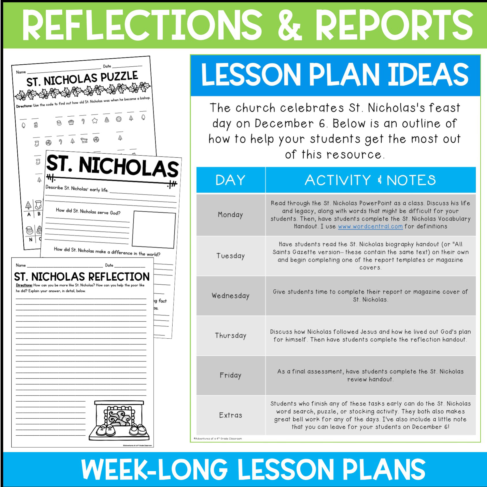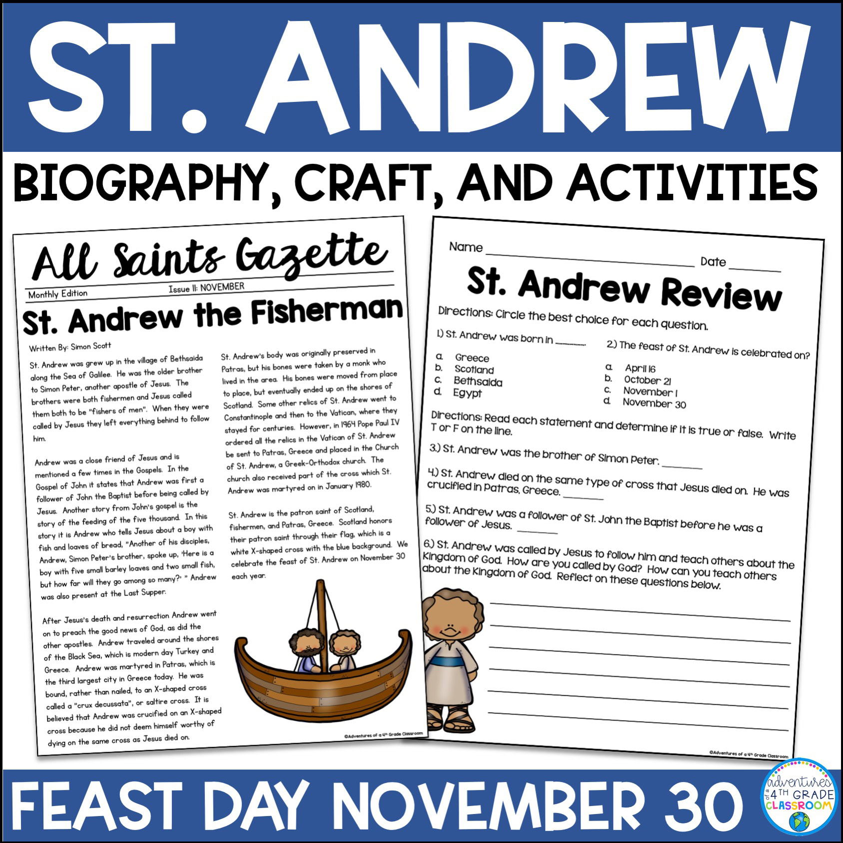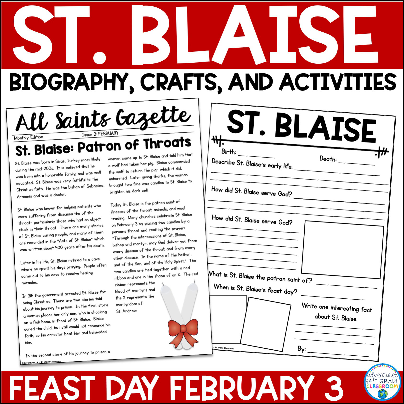 In this bundle, you will find 12 saints- one for each month of the year. In each resource, you will find a biography of the saint, PowerPoint presentation of the biography, comprehension questions handout, vocabulary review, report for students to fill out (2 versions), reflection handout, craft activity, word search, magazine covers students can complete about the saint, lesson plan suggestions and an answer key. The resource is in color and B&W.